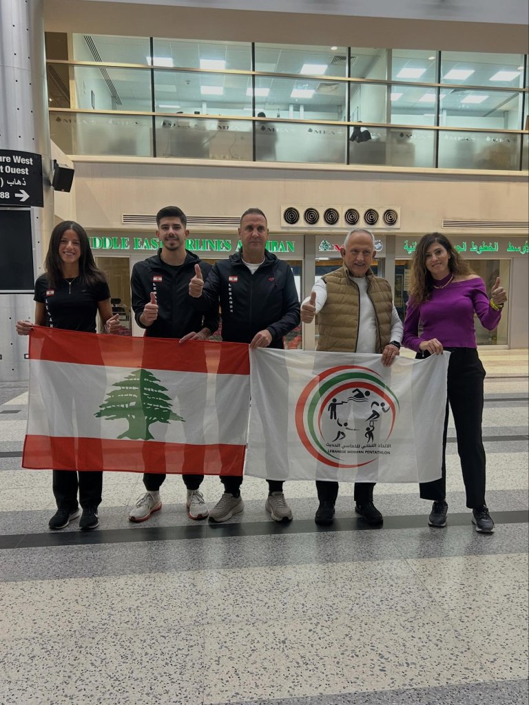 The Lebanese Modern Pentathlon delegation departed this evening for the city of Mossel Bay in South Africa to participate in the Biathle, Triathle, and Laser Run World Championships, taking place from December 8 to 14, 2025.